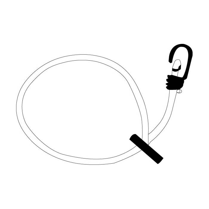 AB06 : système de fixation pour banderole composé d'un embout basculant de 60cm de sandow 6mm blanc et d'un crochet de fixation