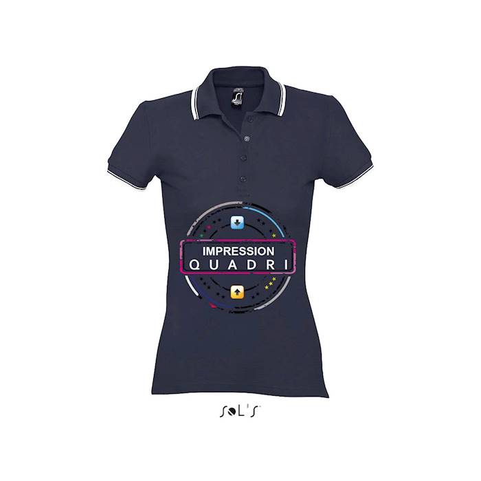 Finitions : Impression numérique quadri sur polo femme Sol's modèle Practice. Couleurs aux choix (voir fiche couleur) panachage couleur possible. Avantages : L'impression numérique haute définition avec blanc de soutien permet un rendu de couleur exceptionnel quel de soit la couleur du polo. Exemples d'utilisation : Vêtements de travail, évènementiels ... Conseils de "pro" : Un lavage des polos à l'envers à 30° permet un maintien de la qualité des couleurs sur du long terme.