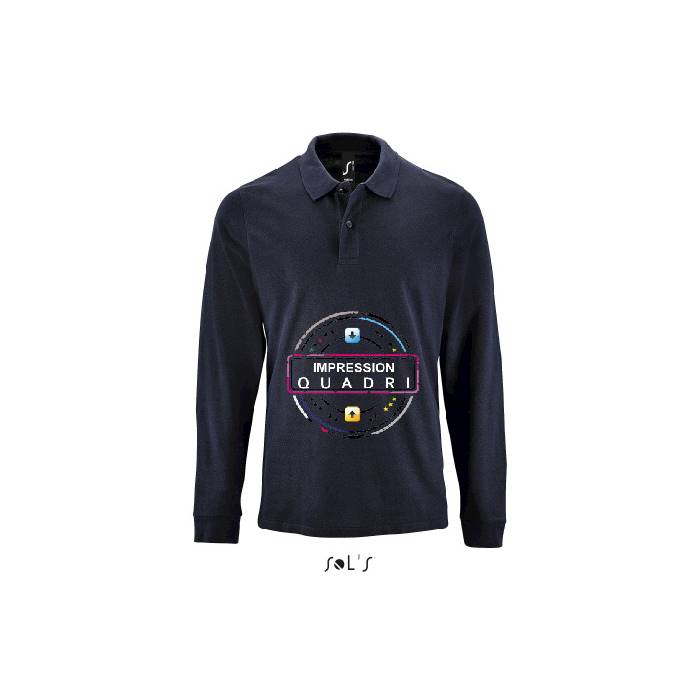 Finitions : Impression numérique quadri sur polo manche longue homme Sol's modèle Perfect LSL.