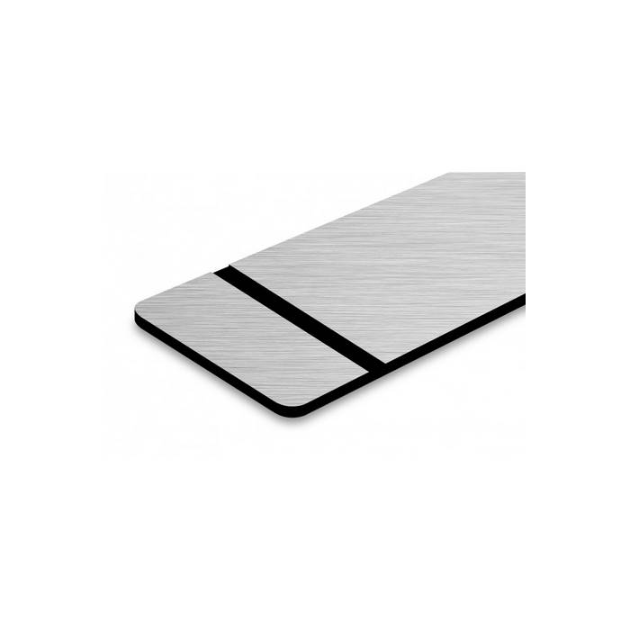 Matière acrylique bi-couche + double face 467 au dos : fond acier brossé texte noir, résistante aux UV, parfaitement adaptée pour la signalétique intérieure ou extérieure, la réalisation de badges, la signalétique de sécurité...